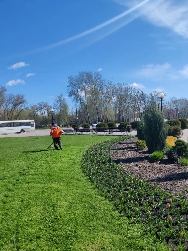 Сотрудники «Зеленхоза» приступили к покосу травы на площади Петра, открывая плановые работы по благоустройству города.